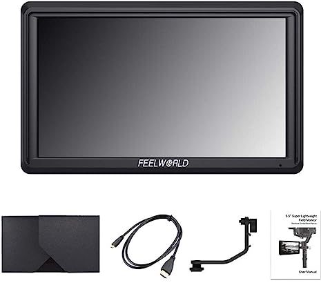 FEELWORLD FW568 – Monitor de campo para cámara réflex digital 4K de 5.5 pulgadas, IPS Full HD 1920 x 1080, soporte HDMI entrada de salida brazo inclinable.